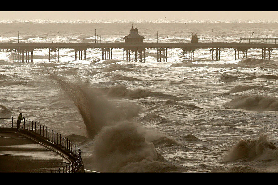 A man watches as Storm Gertrude whips up the Irish sea off Blackpool as it crosses over northwest Britain Friday. Red weather warnings are in place as Gertrude whips up winds of up to 90 m.p.h. Phil Noble/Reuters