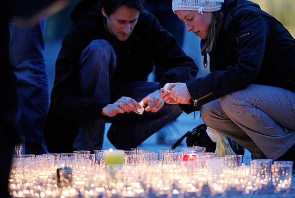 People in Bern, Switzerland, light candles during a vigil for victims of the earthquake and tsunami in Japan.
