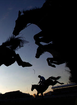 Horses jump a fence in The Grand Annual Steeple Chase Challenge Cup during the Cheltenham Festival horse racing meet in Gloucestershire, western England. Eddie Keogh/Reuters