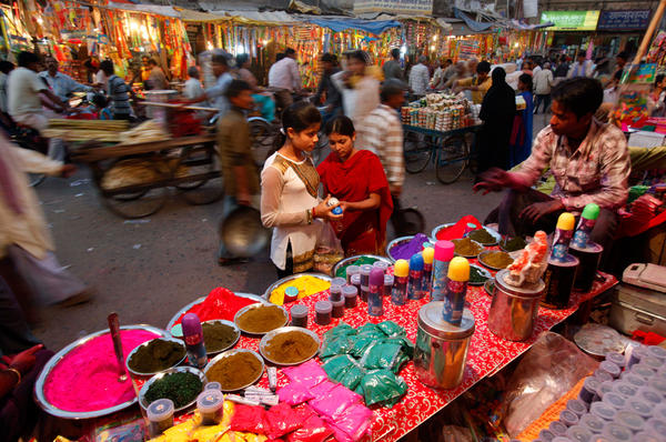 Indian girls buy powdered colors from a wayside vendor ahead of the Holi festival, in Allahabad, India. Holi, the Hindu festival of colors, is traditionally celebrated by people throwing colored powder and colored water at each other and will be marked across the country on March 20. Rajesh Kumar Singh/AP